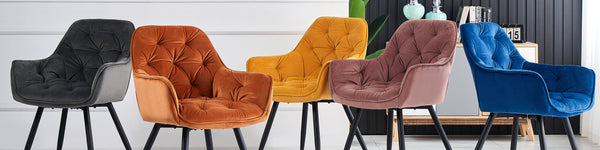 Chairs and Stools are made of velvet or PU materials, each of which provides a different look and feel. With its metal legs, it is an ideal for well-used furniture and homes with kids and pets. Tables are made of wood, marble or high gloss materials, and the bottom is equipped with anti-skid foot pads, which can effectively prevent the table from moving or scratching the floor. Other common materials include upholstery fabric, which is comfortable and attractive, which will add texture to your space.